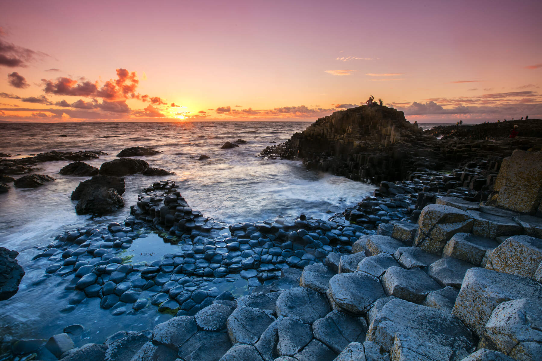 Fieramente atlantica, l’Irlanda ha da sempre un intenso dialogo con l’Atlantico che la bagna e che ne ha scenograficamente modellato le coste. Uno dei punti più suggestivi è sicuramente l’affioramento roccioso chiamato Giant’s Causeway o Strada del Gigante, nella contea di Antrim, in Irlanda del Nord, che con le sue stupefacenti 40.000 colonne basaltiche di origine vulcanica è stato dichiarato nel 1986 Patrimonio dell’Umanità dell’UNESCO. Ogni giorno si incontrano i venti oceanici e le onde in una poetica fusione che ricorda lo spirito romantico della leggenda del gigante creatore di questa strada per raggiungere la sua amata in Scozia.