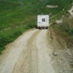 Come sarebbe, comprare e montare un navigatore, e poi usare la arcaica cartina cartacea? Nononono, se cartina dice una cosa e navigatore un’altra, non si discute, si naviga! Pare, che la stradina del navigatore non era esattamente un’autostrada, Lunardi ancora non c’ha messo le manine, comunque in qualche modo ci si andava, finche la colonna dei temerari del turismo itinerante non si è trovata d’avanti una frana… Girare e tornare indietro non era possibile, si doveva attraversare…