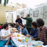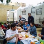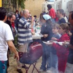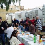 Ma la processione vera è stata quella avanti dietro dalla pasticceria. Si potrebbe definire anche “La strage dei cannoli”. Man mano che il popolo itinerante rientrava al campo sportivo, si allungava la fila dei tavoli dietro ai camper e la fila delle griglie dietro ai tavoli. Sull’argomento è stato fatto un ampio servizio fotografico, così non diranno, che mi sono inventata tutto, è proprio vero, che hanno mangiato e (sopratutto) bevuto come dei mhhhhhhh…(volevo scrivere “maialetti”, ma forse non sta bene, allora lascio in bianco)