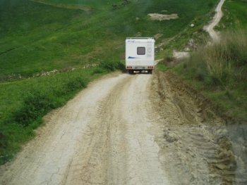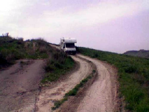 Come sarebbe, comprare e montare un navigatore, e poi usare la arcaica cartina cartacea? Nononono, se cartina dice una cosa e navigatore un’altra, non si discute, si naviga! Pare, che la stradina del navigatore non era esattamente un’autostrada, Lunardi ancora non c’ha messo le manine, comunque in qualche modo ci si andava, finche la colonna dei temerari del turismo itinerante non si è trovata d’avanti una frana… Girare e tornare indietro non era possibile, si doveva attraversare…