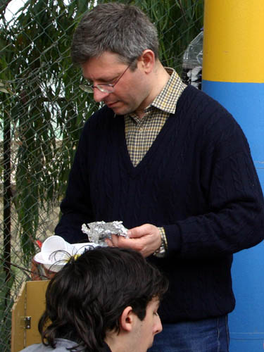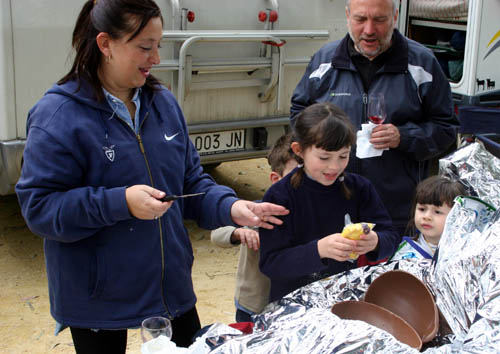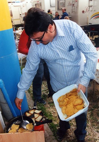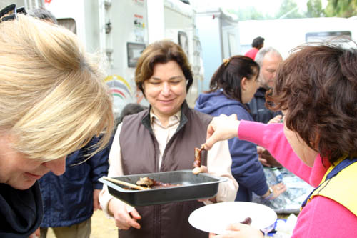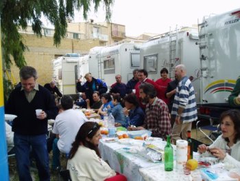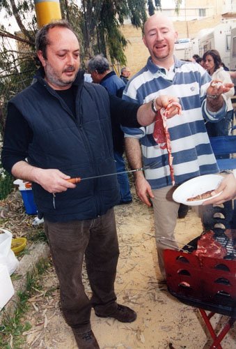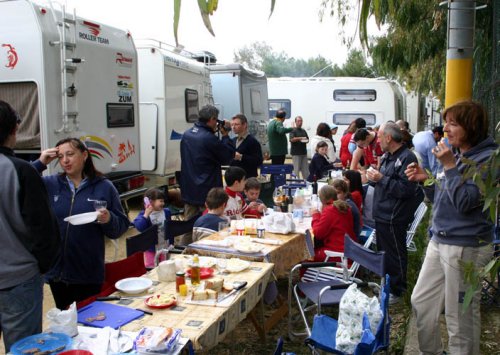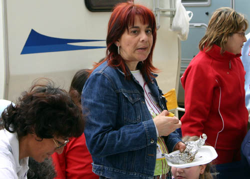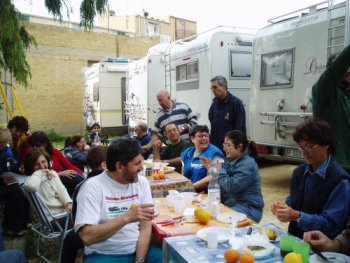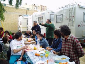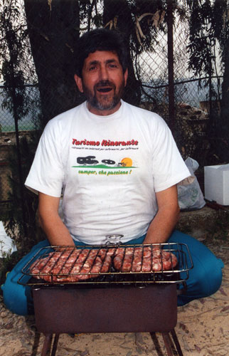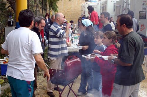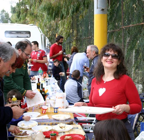 Ma la processione vera è stata quella avanti dietro dalla pasticceria. Si potrebbe definire anche “La strage dei cannoli”. Man mano che il popolo itinerante rientrava al campo sportivo, si allungava la fila dei tavoli dietro ai camper e la fila delle griglie dietro ai tavoli. Sull’argomento è stato fatto un ampio servizio fotografico, così non diranno, che mi sono inventata tutto, è proprio vero, che hanno mangiato e (sopratutto) bevuto come dei mhhhhhhh…(volevo scrivere “maialetti”, ma forse non sta bene, allora lascio in bianco)