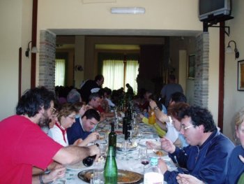 Incontro si è concluso a pranzo in agriturismo, del quale ricordo solo un sacco di gente, di pietanze e di bottiglie… Se qualcuno era piu sveglio di me e si ricorda qualcosa, è pregato fornire aggiornamenti! Mi ricordo solo, che Alessandra si è portata a casa i carciofi avanzati nel piatto, ma non mi ricordo davvero a cosa le servivano…