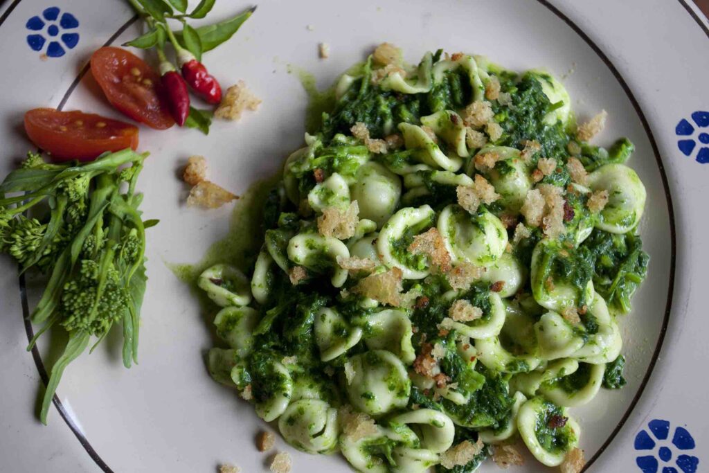 Orecchiette allo sfusato amalfitano con pesto di fagiolini dell’orto della trattoria con cacio ricotta di capra ionica