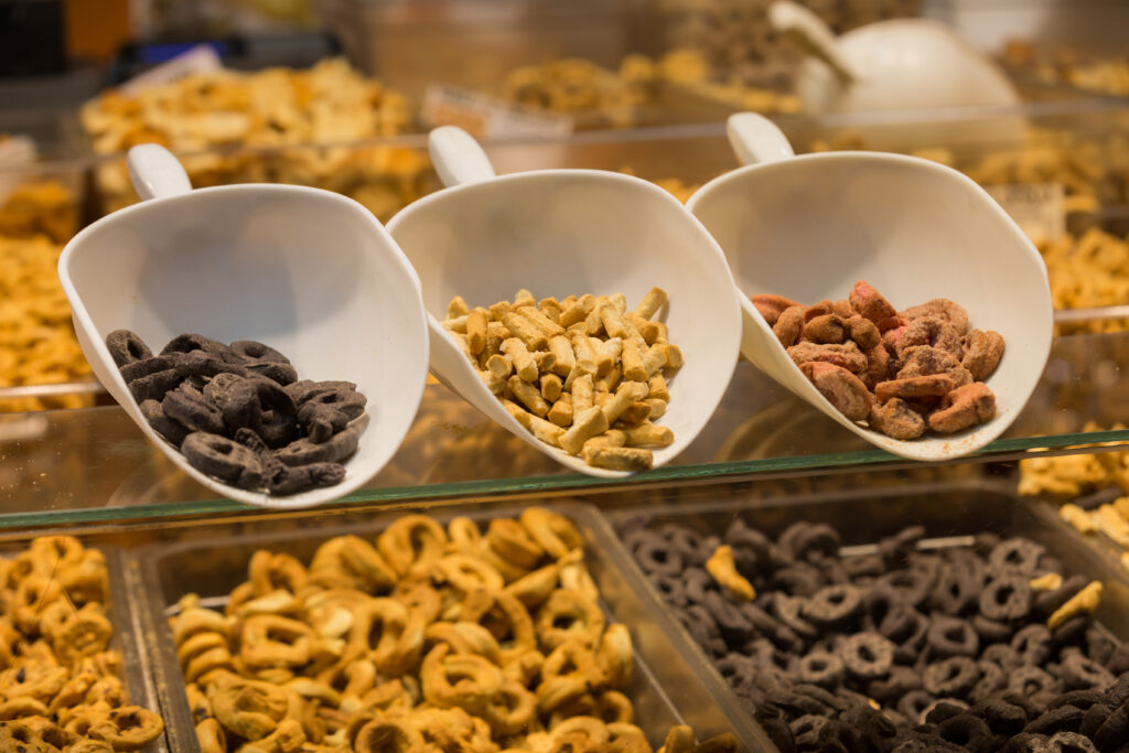 Dai prodotti caseari come il parmigiano reggiano di vacche rosse al pecorino con pera fichi e tartufo ma anche mozzarella di bufala o gorgonzola di svariati gusti, accompagnati da salumi e mostarde ma anche confetture e salse senapate. Da nord a sud tutte le eccellenze gastronomiche trovano spazio al BonTà dai prodotti ittici di Lampedusa affumicati e conservati sott’olio come il tonno o paté di pesce alla focaccia farinata toscana ma anche il pesto e testaroli liguri.