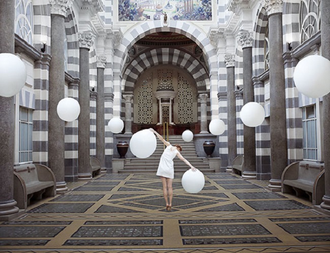 La sua idea di fondo è stata creare un personaggio che si è appropriato di ogni luogo, per renderlo vivo e sorprendente. Insieme protagonista e spettatore, questo personaggio ricorrente anima e innova i luoghi del patrimonio visitati.