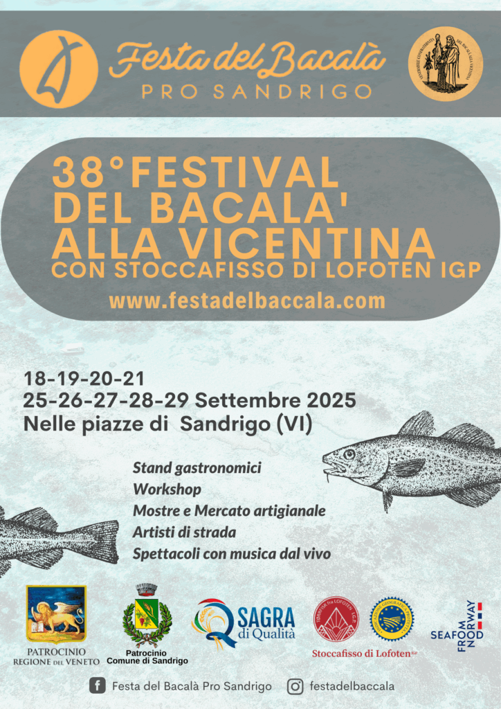 Domenica 14 settembre in Villa Mascotto di Ancignano di Sandrigo (Vicenza) torna Bacco & Bacalà con tante novità. L’undicesima edizione introduce un format rinnovato che alterna differenti formule di degustazione ad approfondimenti dedicati alla mixology in abbinamento a pietanze con lo Stoccafisso di Lofoten IGP. Parte integrante della trentottesima Festa del Bacalà alla Vicentina in programma a Sandrigo dal 18 al 29 settembre, la manifestazione è organizzata dalla Pro Sandrigo con la partecipazione della Confraternita del Bacalà alla Vicentina, in collaborazione con Emmebi Bevande di Marostica, Accademie di cucina e Pro Loco del territorio che porteranno in degustazione i propri piatti tipici.