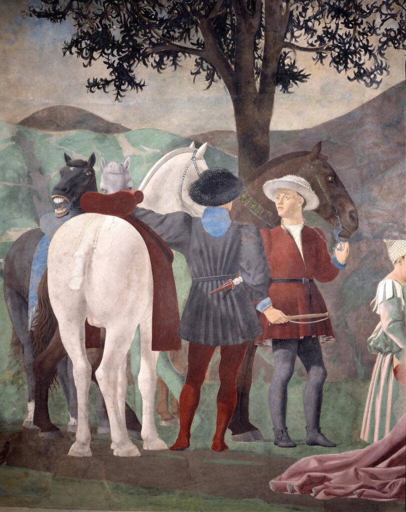 La Leggenda della Vera Croce, realizzata dall’artista in un periodo compreso tra il 1452 e il 1466, presenta una serie di episodi tratti dalla Legenda Aurea del frate domenicano Jacopo da Varagine, una raccolta di vite di santi e spiegazioni di feste liturgiche scritta a partire dagli anni Sessanta del XIII secolo e diffusa con grande successo durante tutto il Medioevo.