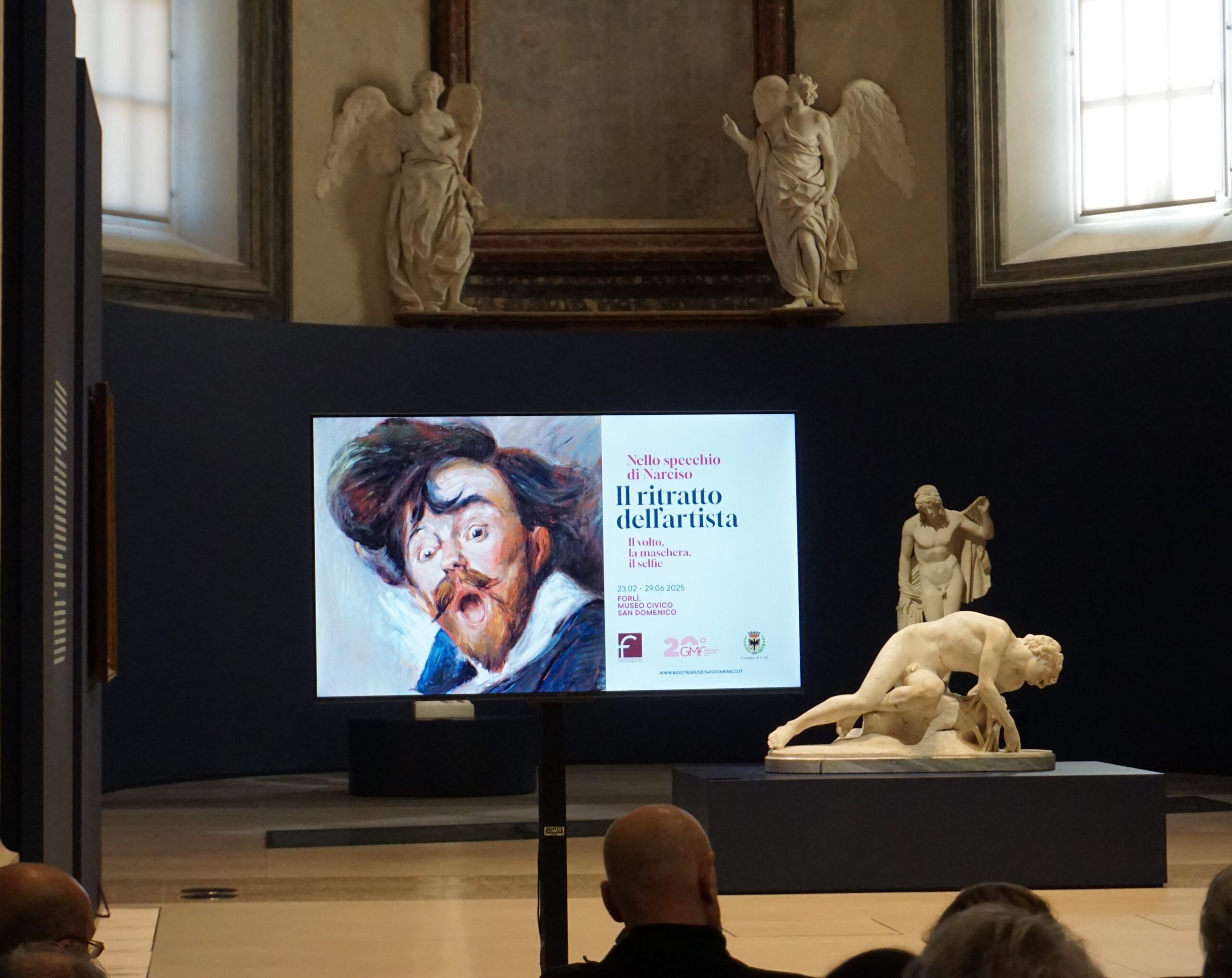 La mostra forlivese al San Domenico ha come filo conduttore il mito di Narciso. Parte dall’antichità per arrivare ai giorni nostri e nelle 122 opere esposte ripercorre la storia del ritratto e dell’autoritratto nella vastità delle sue interpretazioni. I dipinti e tanto altro provengono dalle più importanti gallerie nostrane ed estere. Sono esposti libri, compreso le Metamorfosi di Ovidio del 1522, statue, gessi, busti in marmo… Il tema dello specchio è fra i più ricorrenti, ne sono esposti alcuni incisi provenienti dal mondo antico e altri collocati nell’allestimento per fare del visitatore un emulo di Narciso. Il bellissimo giovane, protagonista di un racconto ripreso dalla mitologia greca, morì per troppo amore verso sé stesso, nel tentativo di abbracciare la sua immagine riflessa nell’acqua. Nel tempo sono state date infinite versionidi questo mito, quella psicologica inclusa. Incantano le parole del curatore e direttore generale Gianfranco Brunelli sulla bellezza... che non è possesso ma contemplazione e se cerchi di possederla, come Narciso muori.
