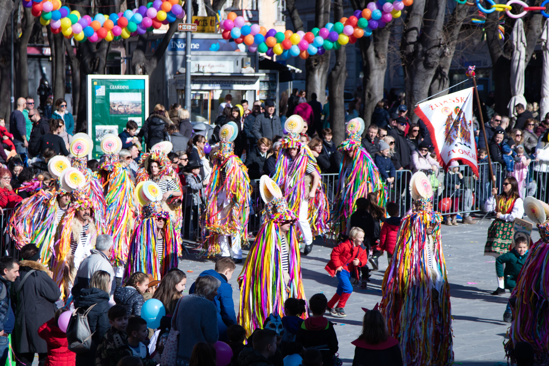 Come tradizione vuole, ogni anno il sindaco di Pula (Pola) – gioiello dell’Istria, famosa nel mondo per lo splendido anfiteatro di epoca romana – consegna simbolicamente le chiavi della città al Maestro del Carnevale, che assume il “comando” e inaugura un periodo di libertà e spensieratezza. Nel 2025 il Carnevale di Pola prenderà il via con “Potraga za Karnevalom” (Ricerca del Carnevale), evento dedicato alle famiglie che animerà il centro città nelle giornate dell’8 e del 15 febbraio: durante queste mattinate, tutti potranno immergersi in un’atmosfera di festa grazie a spettacoli interattivi, laboratori creativi e animazioni. I bambini avranno l’opportunità di salire a bordo dell’Allegro Bus di Carnevale, partecipare allo spettacolo teatrale “Scuola di Maschere” e divertirsi con la pittura del viso (i biglietti per il bus vanno ritirati il giorno precedente presso ufficio dell’Ente per il Turismo di Pola, piazza Foro 3). Il clou dei festeggiamenti sarà il 22 febbraio, quando il centro città accoglierà la tradizionale Grande Sfilata di Carnevale, un appuntamento che riunisce gruppi mascherati e carri allegorici in un corteo vivace e spettacolare. La sfilata prenderà il via con una prima esibizione davanti all’Arena, per poi proseguire fino a Portarata, dove si terrà il grande raduno finale. A rendere ancora più suggestivo l’evento sarà la presenza dell’Orchestra di fiati della Città di Pola e delle Majorettes di Pola. Il 23 febbraio, i festeggiamenti si estenderanno anche ai quartieri di Pola, portando l’atmosfera carnevalesca ancora più vicino alla comunità. A Valmade e Veli Vrh, la giornata inizierà con una sfilata mattutina, mentre a Veli Vrh la festa proseguirà per l’intera giornata, con eventi che coinvolgeranno residenti e visitatori.
