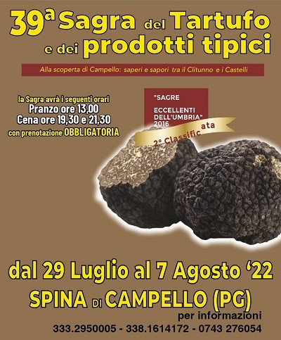 Ritorna dopo circa 2 anni la Sagra del Tartufo e dei prodotti tipici alla Spina di Campello (PG). Appuntamento da venerdì 29 luglio a domenica 7 agosto.