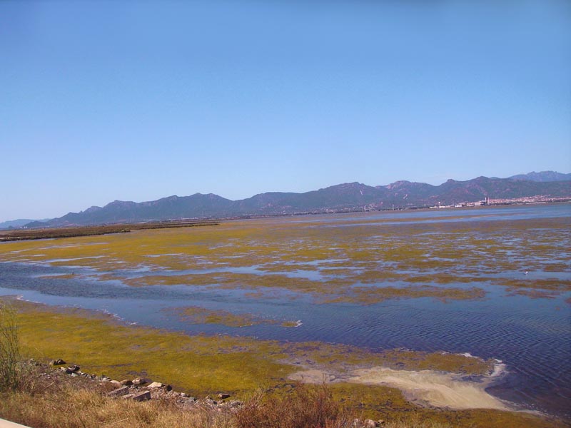 Tra la costa della penisola del Sinis, dove si trova la località che intendiamo raggiungere, e lo stagno si stende una vasta pianura con campi di fieno, pascoli e ovili . Costeggiando sempre lo stagno e percorrendo questa lussureggiante pianura in breve troviamo le indicazioni per Mari Ermi. Sono ormai le cinque del pomeriggio e la strada che adesso percorriamo è assai movimentata, ovviamente perché conduce dritta al mare; quando arriviamo a fine strada, termina in un enorme parcheggio, superaffollato, dove esiste divieto di pernottamento camper, ancora non siamo riusciti a incontrare la strada che conduce presso l’Agricampeggio segnalato da Camperonline. Ci vediamo pertanto costretti a districarci tra le numerose macchine, anche in doppia fila e chiedere al responsabile del parcheggio indicazioni.