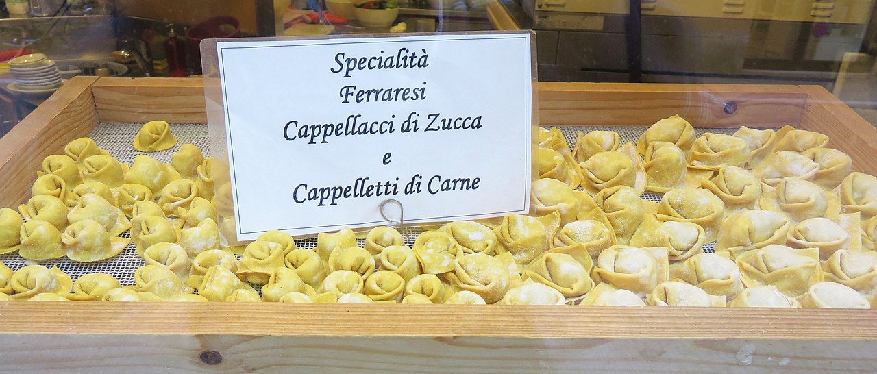 La gastronomia ferrarese è fortemente legata alla presenza della Corte Estense che considerò per lungo tempo la città luogo d’eccellenza per la ricerca culinaria del tempo. Oggi la cucina ferrarese affonda le sue radici in una grande quantità di piatti tipici, sintomi di come l’arte culinaria abbia sempre avuto un ruolo di primo piano per il territorio, ma soprattutto di una cucina fatta di ingredienti semplici e genuini. Quasi tutti i primi piatti hanno una caratteristica comune: la presenza della pasta sfoglia. Alcune proposte: i cappellacci alla zucca, così chiamati perché ricordano la forma del cappello dei contadini, il tortino di zucca con scaglie di grana, i tortelli alle ortiche ripieni di ricotta. Quale secondo piatto come non citare la famosa salama da sugo dal sapore intrigante, fiore all’occhiello dei piatti tipici ferraresi, risalente addirittura alla corte estense. E per accompagnare il tutto i vini proposti dall’Enoteca Estense al Brindisi, considerata una delle più antiche poiché risale al 1435, che “trasuda” rinascimento a tutti gli effetti. Tra i suoi avventori più illustri Benvenuto Cellini, Ludovico Ariosto e Torquato Tasso. L’arte, la cultura, l’atmosfera e la sua gastronomia: insomma in ogni sua pietra Ferrara custodisce una bellezza struggente, antica e unica, come se per qualche arcano mistero fosse stata risparmiata dallo scorrere del tempo!