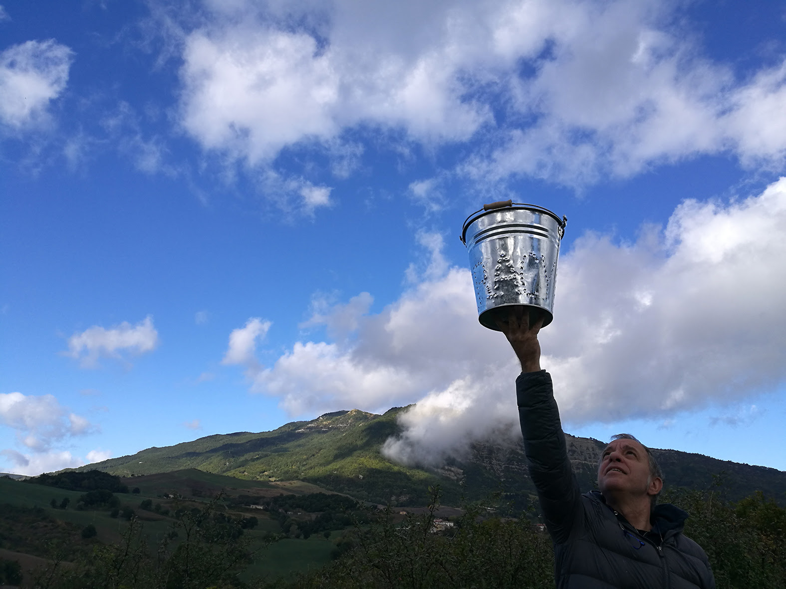 Confrontandosi con i pochi abitanti rimasti nella zona sono nate delle conversazioni che ruotano attorno ai temi della natura, del paesaggio e della vita rurale. Dopo aver individuato nell’aria – che ci tiene in vita e che proprio in questo periodo storico sentiamo di perdere – l’elemento primario della sua ricerca artistica, Muller ha ideato una performance dove l’aria stessa diventa elemento concreto che si può raccogliere e trasportare. Da nove alberi del territorio, a rappresentare i nove castelli di Arcevia, l’artista ne estrapolerà le essenze che in un futuro prossimo verranno portate e rilasciate in un’area metropolitana, un simbolico dono da parte delle zone rurali che abbondano di questo bene prezioso ma invisibile e quindi spesso dato per scontato.