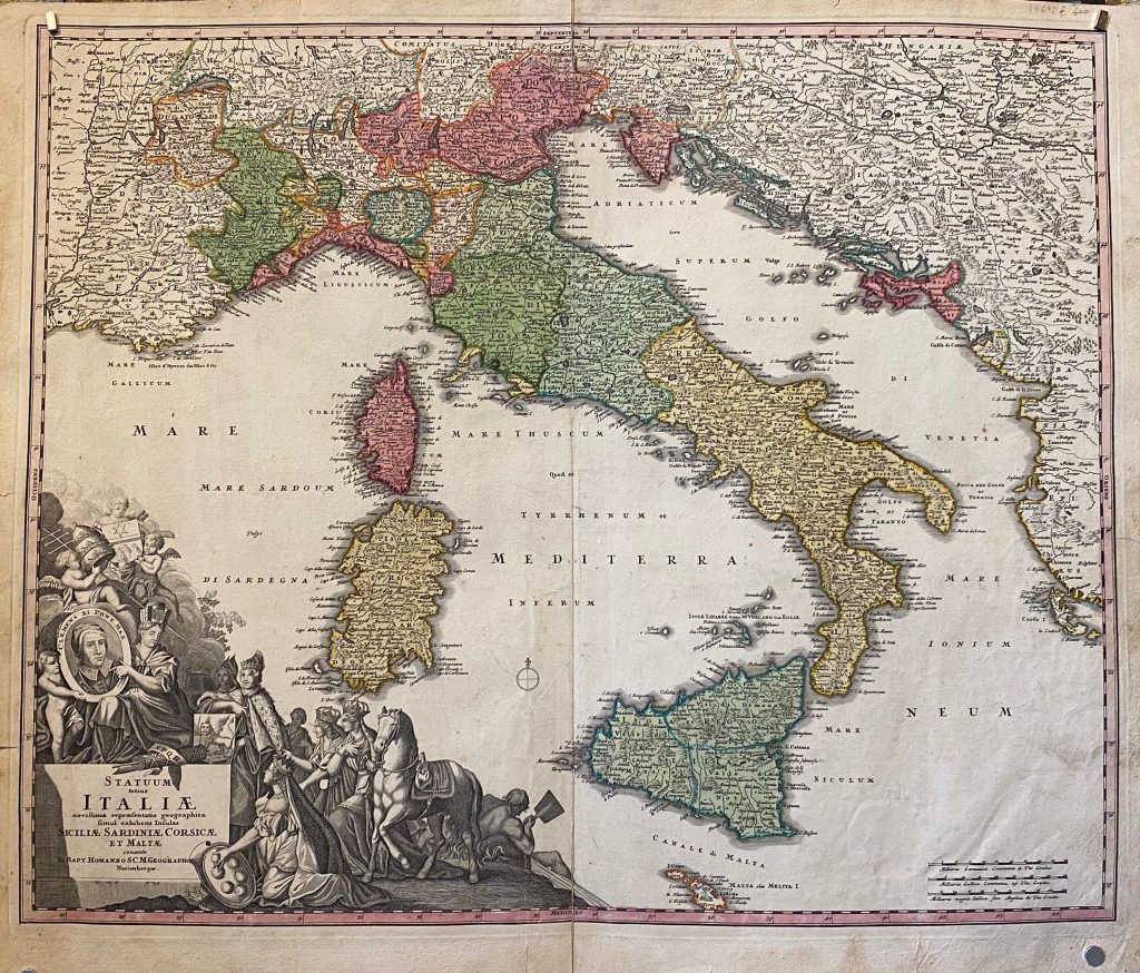 Il primo evento, già in programma, è dedicato all’Italia, in concomitanza con la Festa della Repubblica del 2 Giugno prossimo, in occasione del quale è possibile ammirare ben 35 carte geografiche antiche originali raffiguranti la nostra penisola. Si tratta di carte che abbracciano un lasso di tempo che va dal 1500 al XX secolo, con alcuni pezzi di assoluto pregio come quella realizzata da Girolamo Ruscelli nel 1574, dal Tavernier nel 1640, da Jacopo Cantelli alla del fine ‘600, Pierre Mortiernel 1728,una rara edizione di Mercatore del 1739 e una piccola ma rara carta del Weigel, solo per citarne alcune.