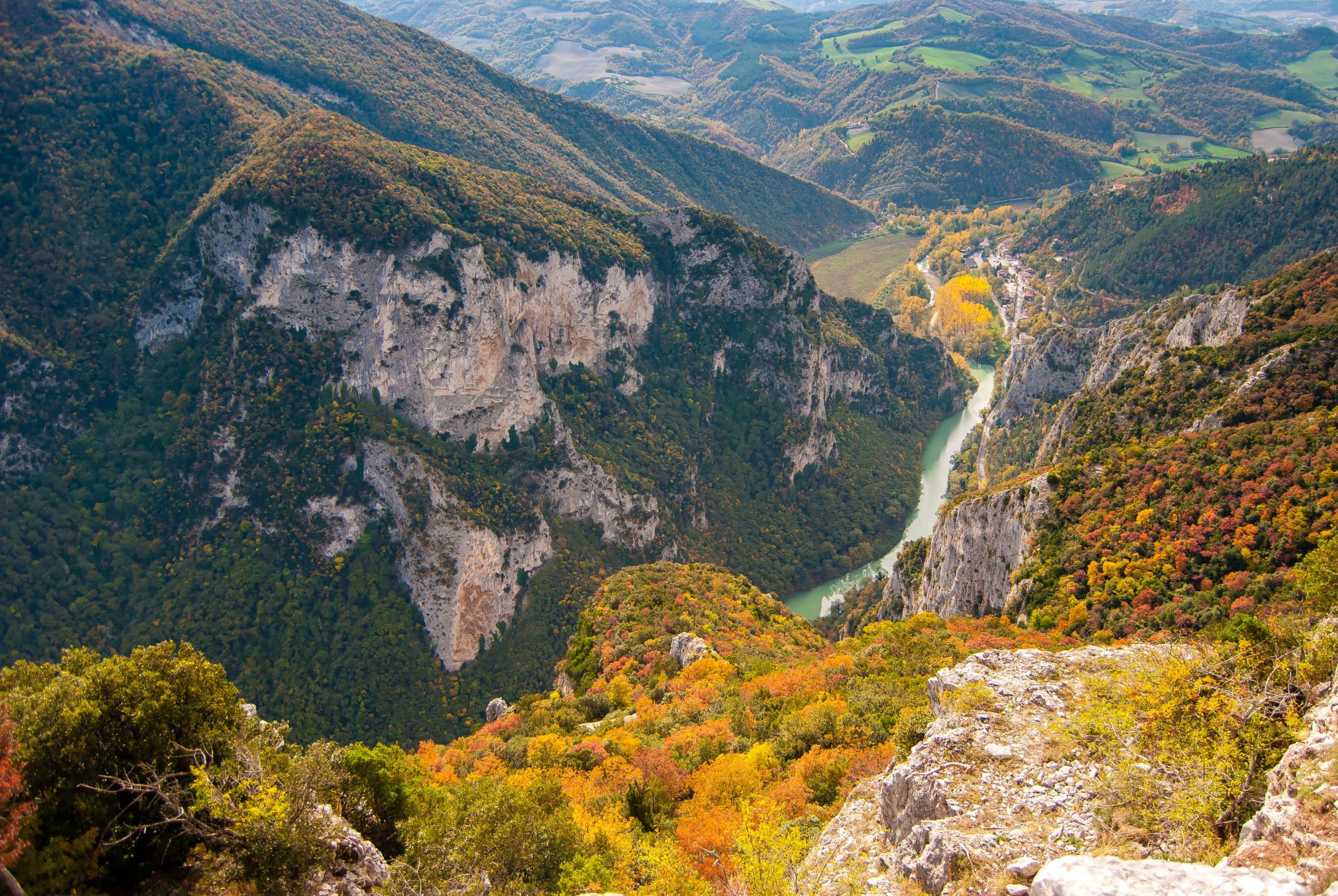 Acqualagna non è solo la rinomata patria del tartufo, ma fa anche parte della Riserva Naturale Statale Gola del Furlo, un territorio di grande bellezza naturalistica, archeologica e geologica. Situata lungo l’antica via Flaminia, nel punto dove il Burano confluisce nel Candigliano, Acqualagna si trova a sud-ovest della Gola del Furlo – il meraviglioso canyon creato dall’incessante scorrere dell’acqua del fiume Candigliano, zona tutta da scoprire a piedi grazie ai numerosi percorsi e trekking che la attraversano, come la camminata che si sviluppa proprio lungo il corso d’acqua, un meraviglioso specchio limpido e verde. Oltre alle bellezze naturalistiche, tra i siti storici da non perdere c’è la Chiesa di San Vincenzo al Furlo, ciò che rimane di un’antica Abbazia dell’VIII secolo in cui abitarono San Romualdo (1011) e San Pier Damiani (1042). Sulle pareti della Chiesa sono ancor oggi visibili affreschi della scuola marchigiana; inoltre, la posizione adiacente ad uno dei più suggestivi passi appenninici fa dell’abbazia una meta davvero suggestiva anche per il magnifico paesaggio che la circonda.