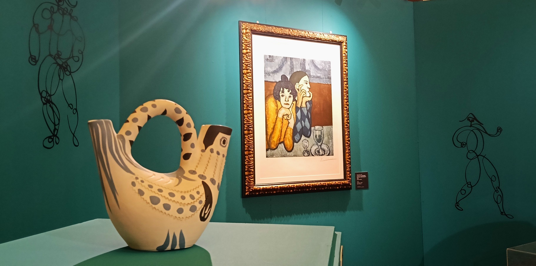 La mostra riporta Picasso a Napoli, città che seppe conquistarlo e in cui soggiornò nel 1917, in occasione della messa in scena di Parade dei Balletti russi per i quali disegnò costumi e allestimento. A Napoli, e in genere durante i suoi viaggi in Italia, Picasso subì la fascinazione della commedia dell’arte e delle maschere tradizionali, come Pulcinella, che divenne, con i costumi di Picasso, un’opera dei Balletti russi, che portarono in scena anche Le Tricorne (1920) con le musiche di Manuel de Falla. Anche di questo celebre balletto, Picasso fu autore dei costumi per i personaggi popolari protagonisti del racconto ispirato al folklore andaluso. In mostra sono presenti 33 stampe di disegni realizzati dall’artista.