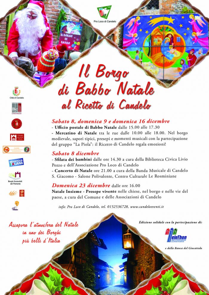 La Pro Loco di Candelo, con la collaborazione dell’Amministrazione Comunale e delle associazioni del paese, sta lavorando alacremente per creare un evento unico, dedicato ai bambini: anche quest’anno ci sarà Babbo Natale che attenderà i visitatori all’interno del Ricetto medievale per accogliere le loro letterine, ci saranno laboratori creativi, presepi, mostre.