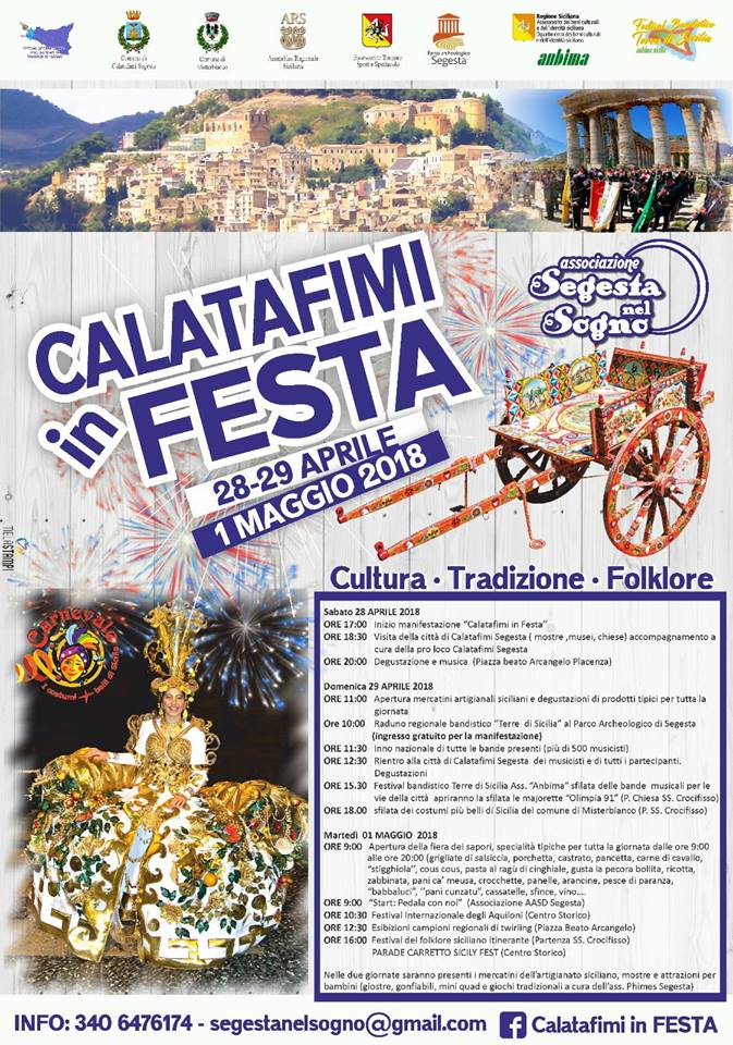 Domenica 29 si parte con il concerto bandistico organizzato dall’associazione “Anbima” presso il parco archeologico di Segesta, in maniera del tutto eccezionale l’ingresso al tempio dorico sarà gratuito. Nella stessa mattinata nel centro storico e per entrambe le giornate sarà aperto il mercato artigianale e lo spazio giochi dedicato ai bambini, oltre alle mostre culturali e all’esibizione di giochi tradizionali.