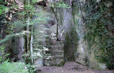 Alcune enormi pietre fungono da scranni. Nella loro regalità forse non è difficile immaginare re Artù che chiede notizie di Ginevra ai pellegrini, mentre l’amore di sir Lancillotto si perde melanconico e nostalgico per le gole rupestri del Treja. Si esce dalla stessa porta che non permette a due macchine di potervi transitare: questo evita traffico e rumore. L’aria è perennemente tersa e odorante, nonostante che i piccioni convivano serenamente in simbiosi con chi gli offre cibo e protezione.
