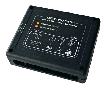 CBE Battery Duo SystemBattery Duo System 150 è un dispositivo elettronico di CBE che grazie al microprocessore integrato, è in grado di ottimizzare la ricarica, e il processo di scarica di due batterie. Sono sempre più numerosi i camperisti che a causa degli aumentati consumi elettrici e della pratica della sosta libera ricorrono alla doppia batteria dei servizi, anche se non sempre però il processo di scarica e ricarica si svolge nella maniera più efficiente.