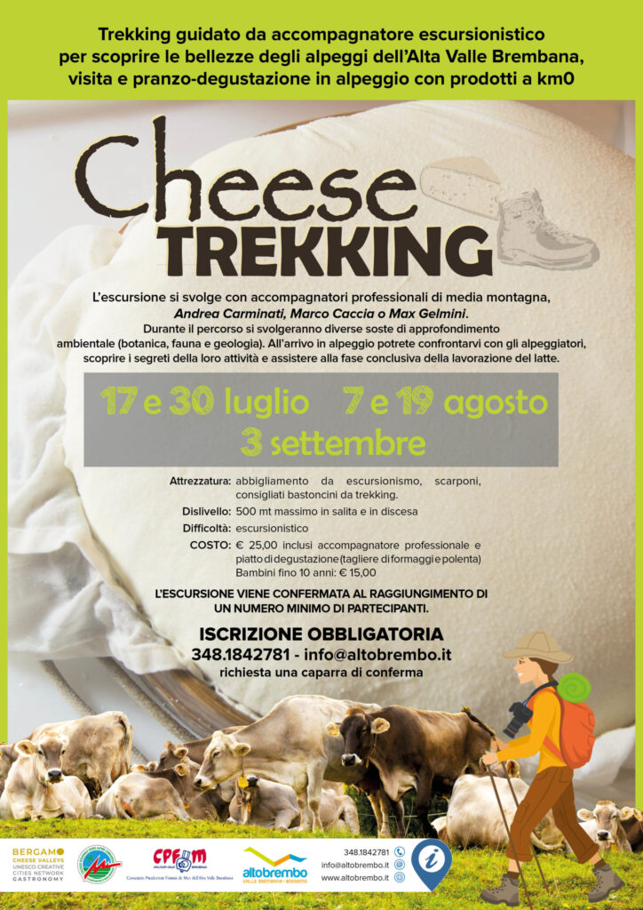 Abbigliamento da escursionismo, scarponi, bastoncini da trekking e tanta voglia di trascorrere una giornata totalmente immersi nella natura, tra sapori del territorio e antiche tradizioni da riscoprire. Sono questi gli ingredienti di Cheese Trekking, evento organizzato da Altobrembo in collaborazione con il Consorzio produttori Formai de Mut dell’Alta Valle Brembana, in programma con un duplice appuntamento domenica 30 luglio e domenica 27 agosto, dalle 8:30 alle 16:00, rispettivamente negli alpeggi di Cantedoldo (dal Passo San Marco, passando per Gambetta) e dei Piani dell’Avaro (risalendo dalla mulattiera da Cusio).