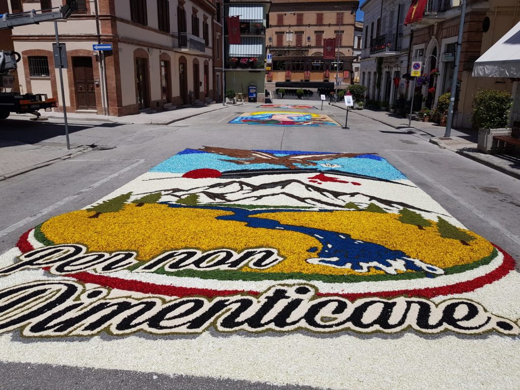 Il 18 e 19 giugno, Castelraimondo si trasforma in un mosaico di colori, con il centralissimo Corso Italia che diviene la tela di appoggio per oltre venti grandi opere floreali ispirate a motivi religiosi e non, realizzate nella notte tra venerdì e sabato con il lavoro febbrile delle associazioni che si adoperano per realizzare quadri sempre più belli e apprezzati.