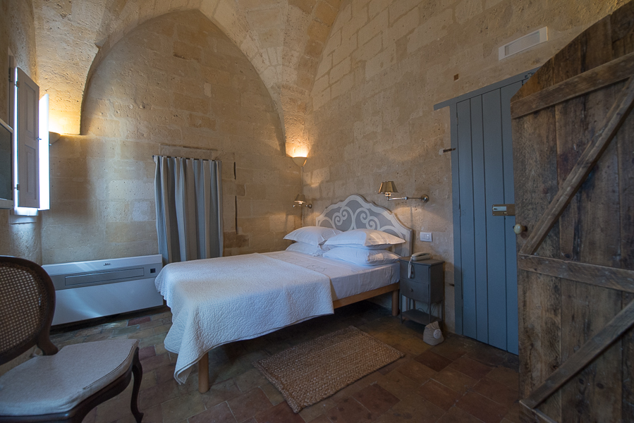 L’Hotel in Pietra nasce in una chiesa del XIII secolo, nei Sassi di Matera, precisamente nel Sasso Barisano. Concepito come un boutique hotel, l’ esclusività e la ricercatezza nella scelta dei materiali e dell’arredo trasmettono un’atmosfera di intimità che traspare in ogni angolo. Le sette camere e le tre suite, diverse tra loro, sono scavate nella roccia, integrandosi in maniera armoniosa agli spazi comuni dell’hotel: sala lettura, e la grande hall.