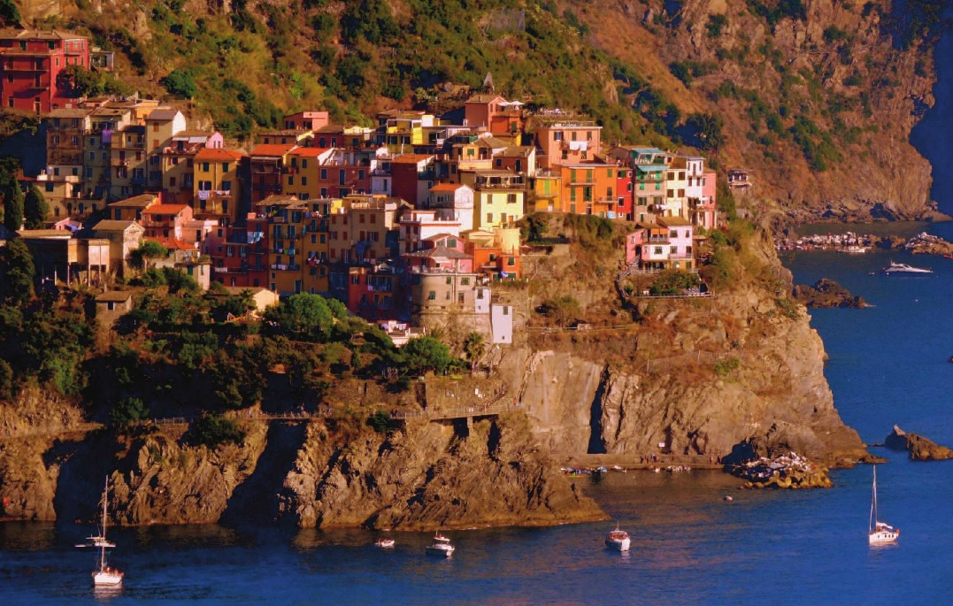 Ciascuna località di questo comprensorio ligure presenta qualche caratteristica che finisce con il renderla particolare e diversa da tutte le altre. Questa considerazione vale anche per Corniglia che è l’unico borgo le cui case non lambiscono l’azzurro delle acque, essendo situato sulla cresta di un promontorio, che sfiora i 100 metri di altezza, a strapiombo sul mare. Inutile parlarvi della splendida vista sulla costa che si può godere da quello straordinario punto di osservazione e di quanto questa particolarità possa incidere, non poco, sulle necessità della vita quotidiana in questa orografia tanto difficile. Ma anche questo elemento dettato – ancora una volta – da una Natura impervia ha finito con il conferire a questo sito un fascino davvero particolare: non per nulla questa località (che è anche la più piccola e la meno popolosa con i suoi circa 300 abitanti), pur facendo parte integrante del comprensorio delle 5 Terre, non ha neppure un suo porticciolo, dove poter fare anche attraccare i battelli ad uso turistico. E questa è una vera e propria rarità in questo tratto di costa tanto che, per molti visitatori, Corniglia merita il titolo di centro più caratteristico di questo territorio!