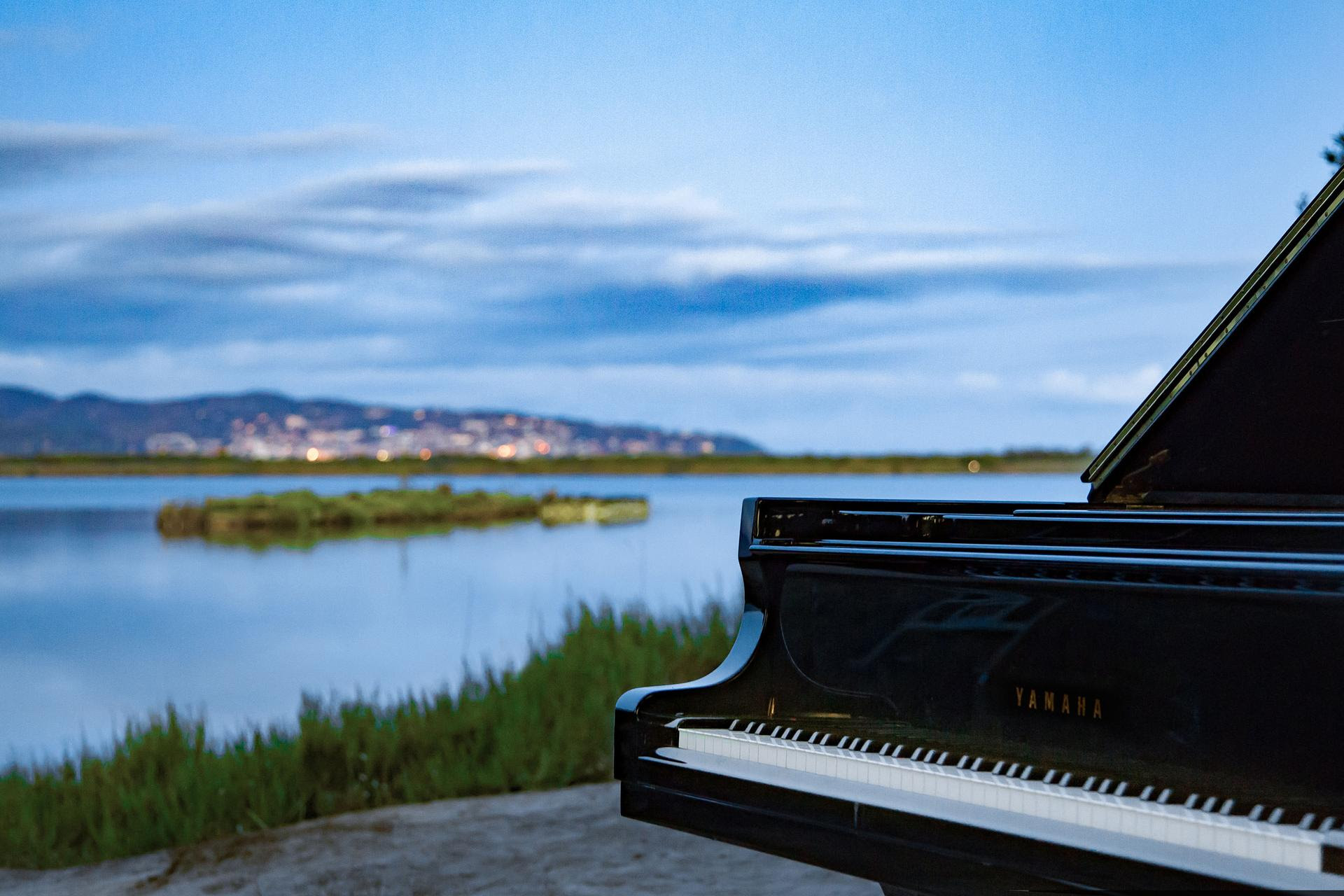 Il pianoforte che suona ovunque: nella scogliera a picco sul mare di Talamone, mentre si attende l’alba nell’oasi WWF di Casale Giannella e ancora sulla Terrazza Guzman spalancata sulla laguna di Orbetello, oppure fra le possenti mura del Forte Saline di Albinia.