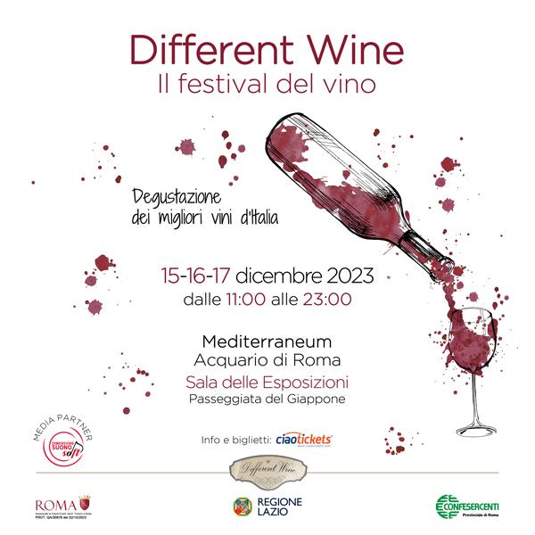 È questa l’essenza del Different Wine Festival, a Roma dal 15 al 17 dicembre, nella Sala delle Esposizioni del nuovo Acquario di Roma Mediterraneum all’Eur (Metro B Palasport, Passeggiata del Giappone, 00144 Roma RM), Una struttura di 14mila metri quadri in fase di apertura che ospiterà per la prima volta un evento pubblico. Un evento ideato per dare spazio a piccole e medie eccellenze enologiche del nostro Paese. Una proposta innovativa e, appunto, “different”, per  valorizzare e far emergere realtà imprenditoriali  del settore enogastronomico legate tra loro  dal comune denominatore della qualità e della millenaria tradizione mediterranea, un’importante vetrina per Roma ed il territorio limitrofo. Più di 80 cantine vinicole indipendenti e aziende agro-alimentari italiane; più di 250 varietà di vitigni autoctoni; 1800, il numero che la struttura è in grado di accogliere contemporaneamente.