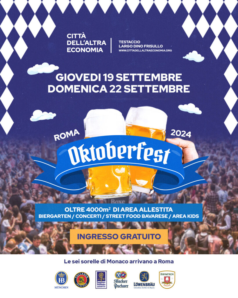 La più grande festa popolare al mondo: l’Oktoberfest di Monaco è nata nel 1810 come celebrazione del matrimonio tra il principe ereditario Ludovico di Baviera e la principessa Teresa di Sassonia – Hildburghausen. Da allora si è evoluta in un evento annuale, birrario e gastronomico, che dura circa 16-18 giorni, dalla fine di settembre fino al primo fine settimana di ottobre e che si svolge nel grande spazio aperto chiamato “Theresienwiese”. Qui vengono allestiti enormi tendoni, gestiti dai 6 storici birrifici di Monaco. Oltre che nella capitale bavarese, sono numerose le città in tutto il mondo, in cui si tengono manifestazioni ispirate alla Oktoberfest originale. Quella di Roma è giunta alla terza edizione.
