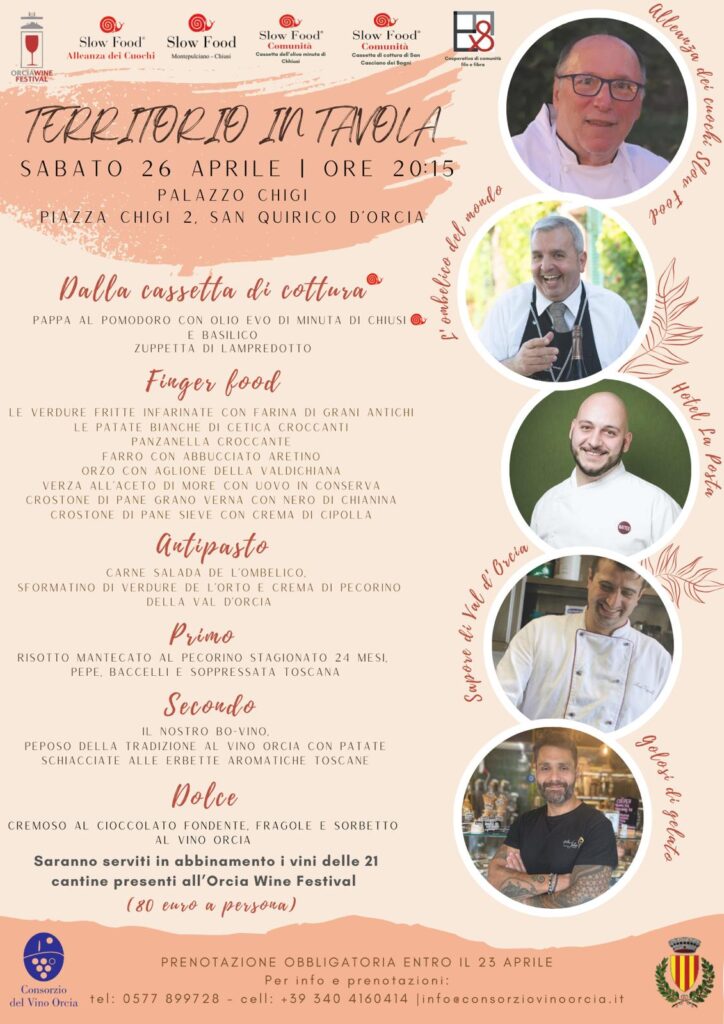 Dal 24 al 27 aprile a San Quirico d’Orcia la mostra mercato con i vini dell’Orcia Doc promossa dal Comune di San Quirico d’Orcia, in collaborazione con il Consorzio del Vino Orcia, allestita nelle suggestive sale di Palazzo Chigi dove per quattro giorni troveranno spazio degustazioni tecniche guidate e banchi di assaggio.