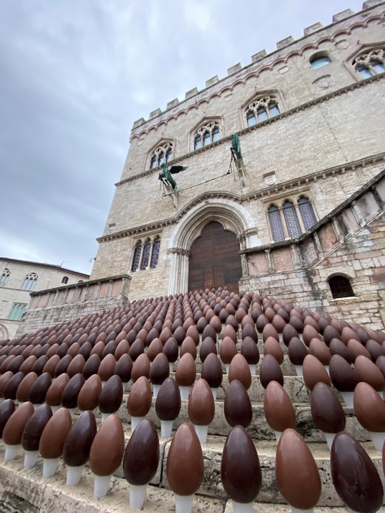 A realizzare una simpatica installazione, perfetta per divertenti scatti a tema, saranno invece i Piccioni Radioattivi, gruppo informale di giovani artisti che dal 2017 si riuniscono all’interno del Centro Servizi Giovani del Comune di Perugia organizzando performance e progetti. Protagoniste le sagome bidimensionali raffiguranti l’immancabile piccione radioattivo alle prese con alcune uova di cioccolato rotte, a richiamare l’episodio firmato Alfred HitCHOK accaduto sulla scalinata di Palazzo dei Priori in occasione del primissimo lancio dell’evento.