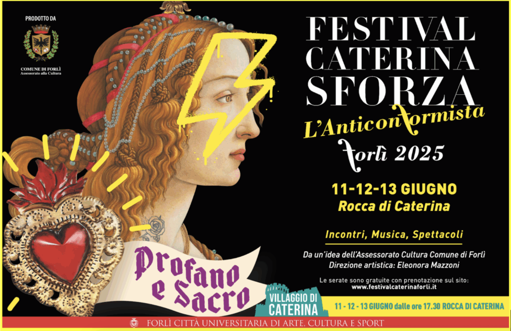 Torna il Festival Caterina Sforza di Forlì. L’anticonformista 2025, la rassegna di spettacolo, cultura e intrattenimento dedicata al “femminile” in tutte le sue sfaccettature partendo da una delle figure più emblematiche del Rinascimento italiano, promossa dall’Assessorato alla Cultura del Comune di Forlì, con concept e direzione artistica di Eleonora Mazzoni, scrittrice e saggista. Il Festival in programma da mercoledì 11 a venerdì 13 giugno con eventi presso la Rocca di Ravaldino, dalle ore 17:30 alle ore 23:30.