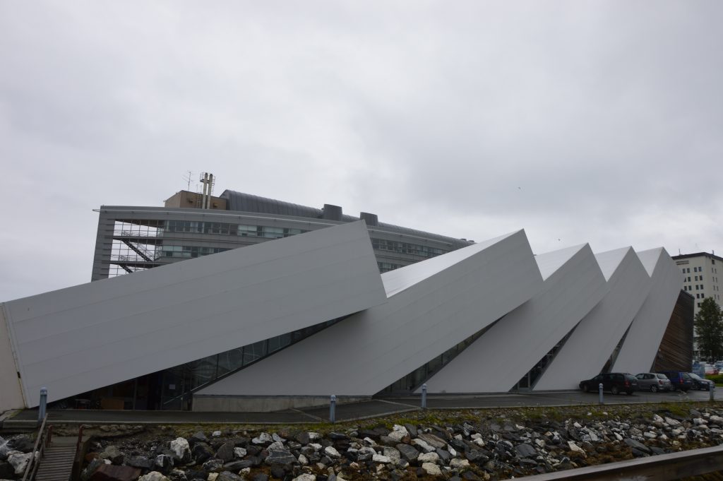 Decidiamo di arrivare a Tromsø senza usare traghetti, anche perché per il primo (da Olderdalen) c’era da attendere parecchio visto che l’imbarcazione era ancora sulla sponda opposta. Il tempo è nuvoloso e la temperatura (alle 9) è di 8°C. Lungo il percorso cascatelle che diventano molto alte quando si costeggia la montagna, un po’ alimentate dalla neve non ancora sciolta, in alto sulle montagne, un po’, probabilmente, dalla pioggia di questi giorni. Anche su questo tratto di strada parcheggi utilizzati per sosta notturna da camper e roulotte. Arrivati a Tromsø (con la E6 per poi prendere, a Nordkjosboth, la E8) ci dirigiamo, non senza difficoltà, verso una delle due aree indicate. Passato il ponte sul fiordo si imbocca quasi subito un tunnel che porta a vie sotterranee con tanto di rotatorie e, ovviamente, il TomTom perde il segnale: per fortuna Stefania aveva memorizzato prima la direzione da prendere. L’area indicata è dietro al birrificio e a fianco del Polaria, ma, dovendo fare acqua, seguiamo l’indicazione di un camper-service lì vicino, dietro il Polaria e di fronte al porto turistico. A 100 m da tale camper service notiamo un parcheggio con molti camper e, visto che è in piano, asfaltato e tranquillo (mentre quello precedente era sterrato) decidiamo di fermarci qui. Visitiamo il vicino birrificio Mack (36,59 € – 340 NOK), in compagnia di un altro italiano, con un’accompagnatrice che parlava un inglese comprensibile (come spesso capita con chi non è di madrelingua) e facciamo un giro per la città.