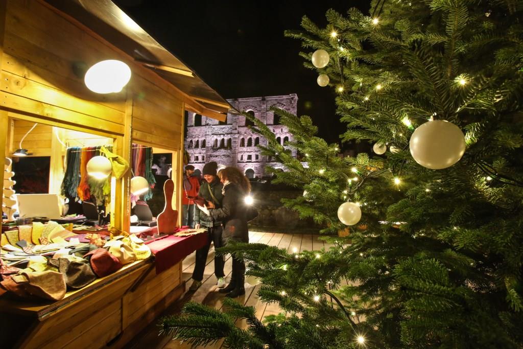 Ad Aosta fino al 6 gennaio va in scena il Marché Vert Noël, il mercatino natalizio allestito presso il Teatro Romano. Qui l’atmosfera tradizionale tipica del villaggio alpino e il fascino senza tempo dei resti romani si incontrano dando vita ad un connubio perfetto, ricco di storia e incanto. Un appuntamento imperdibile alla ricerca di idee regalo, per gustare prelibatezze tipiche del territorio e ammirare l’incantevole scenario dell’antico Teatro magnificamente illuminato. Nella centralissima Piazza Chanoux valdostani e vacanzieri vengono accolti da un grande albero di Natale illuminato con led bianchi che rende ancor più affascinante il centro del capoluogo. Una novità assoluta, fortemente voluta dalla Chambre Valdôtaine, che dimostra come anche l’innovazione e l’arte siano di casa da queste parti.