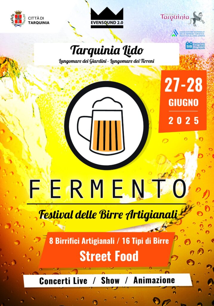 Il 27 e 28 giugno Tarquinia Lido si trasforma in un vero e proprio villaggio del gusto con Fermento, il festival diffuso della birra artigianale che celebra la migliore produzione brassicola del Lazio e della Tuscia in una cornice unica tra mare, sapori e convivialità. Promossa dal Sindacato Italiano Balneari, da Assocamping, dal Comune di Tarquinia e dalla Pro Loco Tarquinia, la rassegna coinvolge l’intero Lido, trasformandola per due serate nel cuore pulsante dell’eccellenza birraria regionale.