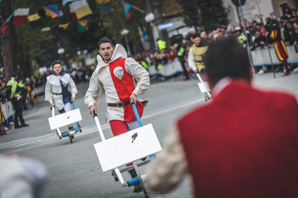 L’attesa maggiore ovviamente è per la corsa con le rane in carriola, dove le sette contrade (Ca’L’Agostina, Calpino, La Pieve, La Torre, San Lazzaro, San Silvestro e Santa Barbara) si contenderanno il prestigioso Palio. Tutto dipenderà dalle intenzioni della rana di saltare o di restare incollata alla carriola per godersi l’ebbrezza della velocità, e dalla destrezza dello scarriolante!
