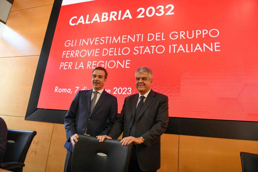 Il 7 dicembre 2023 sono stati presentati dal Presidente della Regione Calabria Roberto Occhiuto e dall’Amministratore Delegato del Gruppo FS Luigi Ferraris gli interventi di elettrificazione e potenziamento delle infrastrutture ferroviarie e stradali, nuovi treni regionali per abbassare l’età media della flotta, collegamenti Intercity con convogli ibridi e riqualificazioni di stazioni e aree urbane.