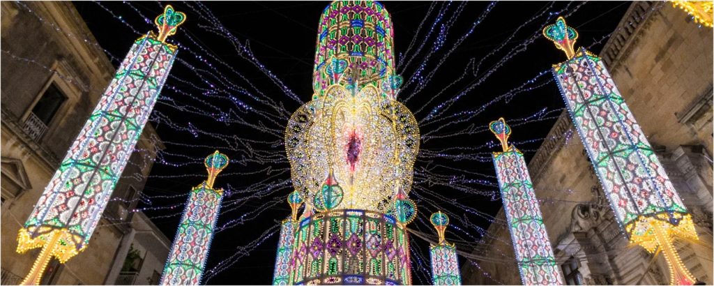 Attraverso affascinanti architetture iridescenti che uniscono tradizione, tecnologia, cultura e divertimento con un milione di luci led e microled, i maestri paratori De Cagna hanno realizzato degli itinerari unici per il Luminarie Otranto Festival, creando un viaggio multisensoriale dentro la memoria e le usanze di una cultura profondamente radicata in tutto il territorio pugliese. Le magnifiche creazioni luminose saranno visitabili dalle 17.30, da venerdì a domenica, tra il 27 novembre e il 19 dicembre, mentre dal 20 dicembre sino al 9 gennaio l’accesso sarà possibile tutti i giorni. Con i mercatini natalizi sono in programma anche attività di animazione, concerti e teatro di strada. Info 080.4301150 e www.luminarieotrantofestival.
