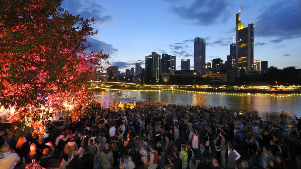 Estate a Francoforte significa soprattutto stare all’aria aperta. Le sponde del fiume Meno sono luogo di ritrovo per amici, coppie, famiglie e persone di tutte le età. Qui si praticano sport, si fanno passeggiate e ci si rilassa lungo fiume o su qualche terrazza per godersi lo skyline della metropoli.