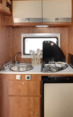 Su tutti i modelli l’azienda di Colle Val d’Elsa ha deciso di montare i nuovi frigoriferi Thetford N3000 nella versione con pannello elettronico di comando a LED. Sono stati scelti i frigoriferi da 90, 100 e 145 litri, con porta piatta color bianco panna, coordinata ai colori dei pensili e in piacevole contrasto con le tonalità del legno che caratterizzano il mobilio interno.