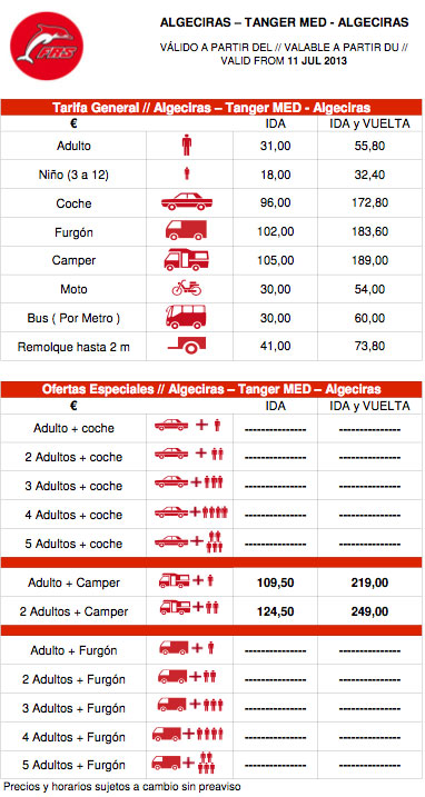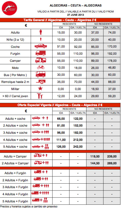 Tariffe - ALGECIRAS-CEUTA