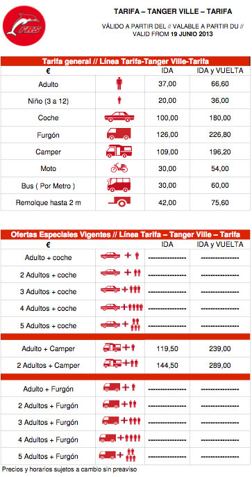 Tariffe - TARIFA-TANGER