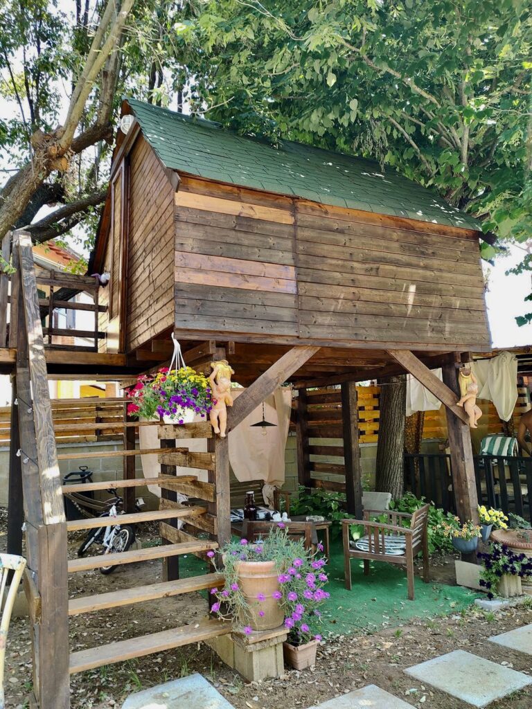 Situata in una corte privata di circa 2000 mq, questa deliziosa casa sull’albero in legno, costruita su palafitte, è un rifugio perfetto per due persone in cerca di tranquillità e semplicità. Circondata da una vegetazione rigogliosa e protetta da una rete che garantisce sicurezza anche per gli amici a quattro zampe, la struttura offre un’atmosfera intima e suggestiva. Gli ospiti potranno rilassarsi nella zona barbecue condivisa, attrezzata con tavoli, sedie, ombrelloni e lettini prendisole. Le spiagge del golfo di Follonica e i borghi medievali come Suvereto e Campiglia Marittima distano pochi chilometri, offrendo possibilità di escursioni giornaliere. Venturina Terme, con i suoi servizi e le rinomate terme, si trova a soli due chilometri, completando così un soggiorno che unisce natura, cultura e benessere.