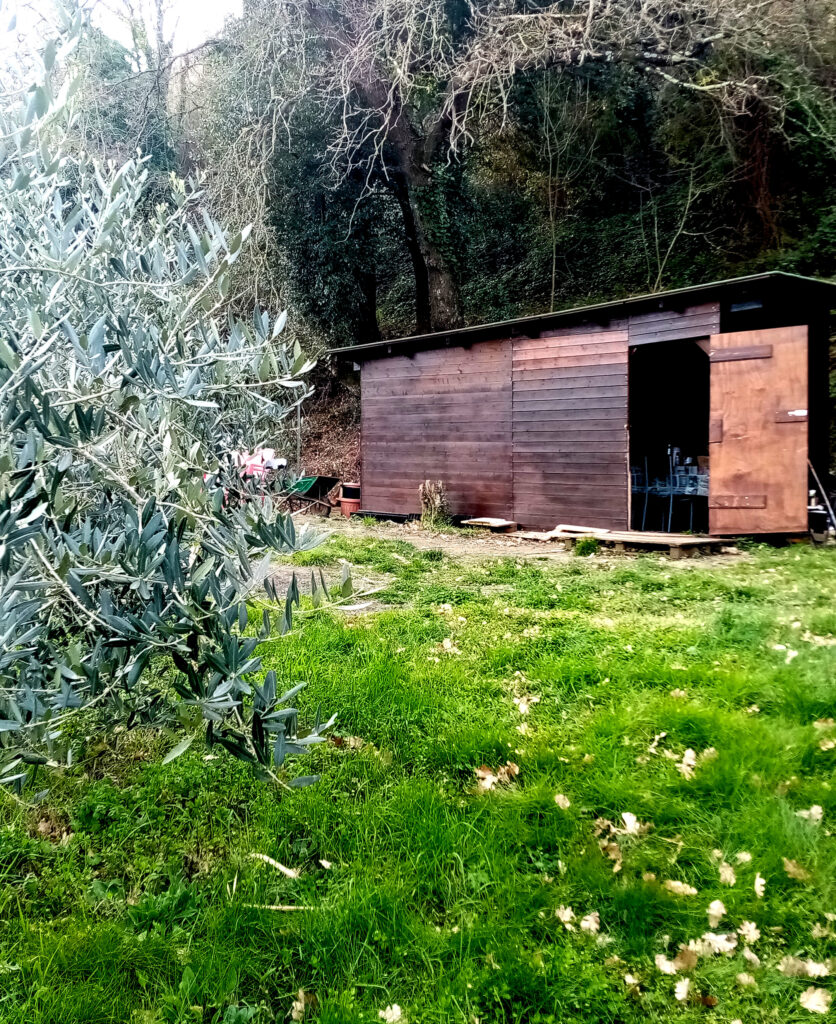 Casetta di legno immersa in un oliveto a Livorno