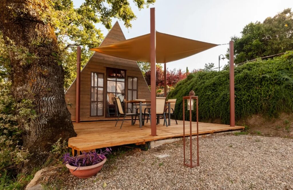La Capanna di Toto, una tenda glamour sotto una maestosa quercia, offre una vista sul colle di Montefiascone, sulla chiesa di Santa Maria di Montedoro e sul Lago di Bolsena. Qui, il silenzio è interrotto solo dal canto degli uccelli e dal lieve fruscio delle foglie, creando un’atmosfera magica. La vicinanza al lago rende l’Agriturismo Poggio di Montedoro ideale per chi cerca una connessione profonda con la natura. Ogni momento trascorso qui è un’ode alla meraviglia del paesaggio lacustre, che al tramonto si tinge di rosa e arancio, o sotto il manto stellato della notte.