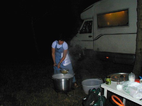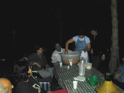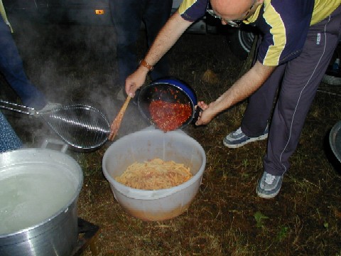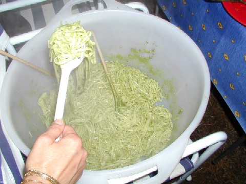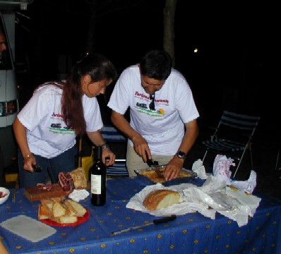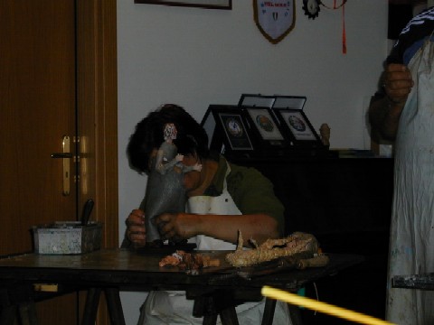 Foto 012: pressiamo il foglio. Foto 013: .ed ora stendiamolo Foto 014: vestizione del pupazzo Foto 015: ora passiamo alle cose serie Foto 016: Marisa controlla il suo lavoro Foto 017: e Paolo controlla le mozzarelle Foto 018: aaah, io sono a dieta Foto 019: lezioni di taglio Foto 020: e la grappa venne dal freddo |