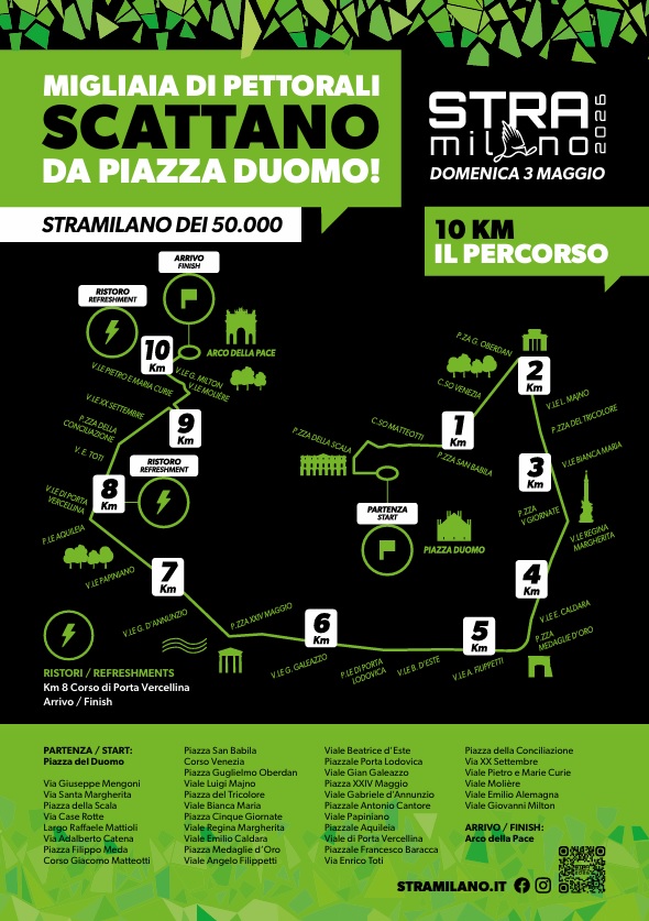 Milano si prepara ad accogliere la stracittadina più attesa della stagione: la Stramilano 2026, che domenica 3 maggio giunge alla sua 53ᵃ edizione. Come da tradizione, Piazza Duomo e Piazza Castello saranno i punti di partenza delle competizioni. Migliaia di runners, appassionati e famiglie trasformeranno le strade milanesi in un fiume di entusiasmo e sportività. Dopo il successo dello scorso anno, che ha visto la partecipazione di oltre 55.000 appassionati nonostante la pioggia, l’appuntamento si rinnova con energia e affetto immutati.