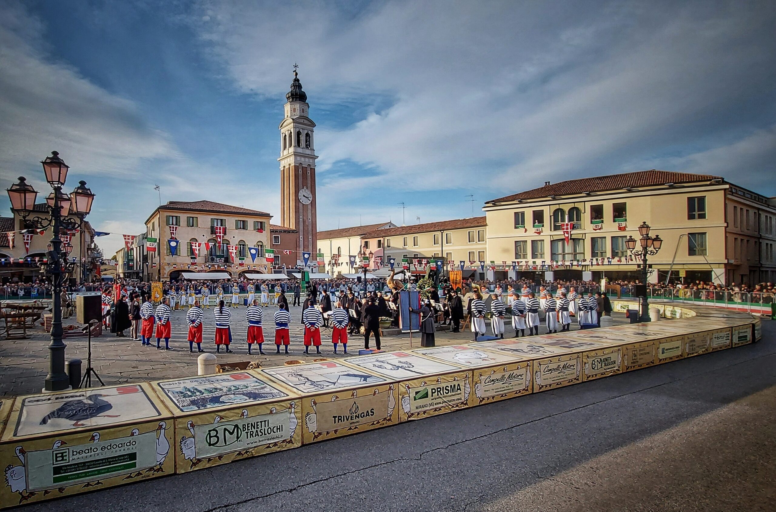 Nel weekend di San Martino, l’11 e il 12 novembre, il paese di Mirano, in provincia di Venezia, torna indietro nel tempo, più precisamente ai primi anni del 1900. Il centro storico della cittadina è animato dalla Fiera dell’Oca e dal Zogo de l’Oca de Miran, una trasposizione dal vivo del celebre gioco dell’oca in cui Mirano e frazioni si sfidano a colpi di dadi.